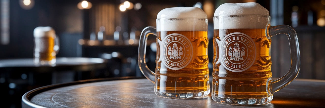 Bellissimi bicchieri Franziskaner con particolare disegno relativo al logo del brand. Ideali per gustare la tua birra preferita